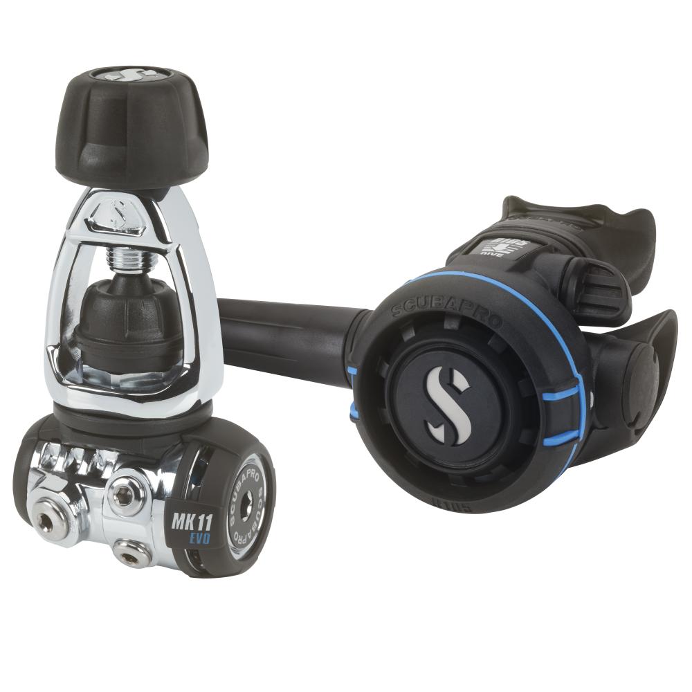 The new MK11 EVO/R105 is a simple, rugged and reliable air delivery system. The MK11 EVO is a compact balanced diaphragm first stage with a forged brass body fitted with thermal fins and protective plastic bumpers to ward off scratches. The R105 delivers smooth, dependable air flow from its classic downstream valve design. Built to last, the R105 features a durable metal valve housing and an anti-scratch front cover.